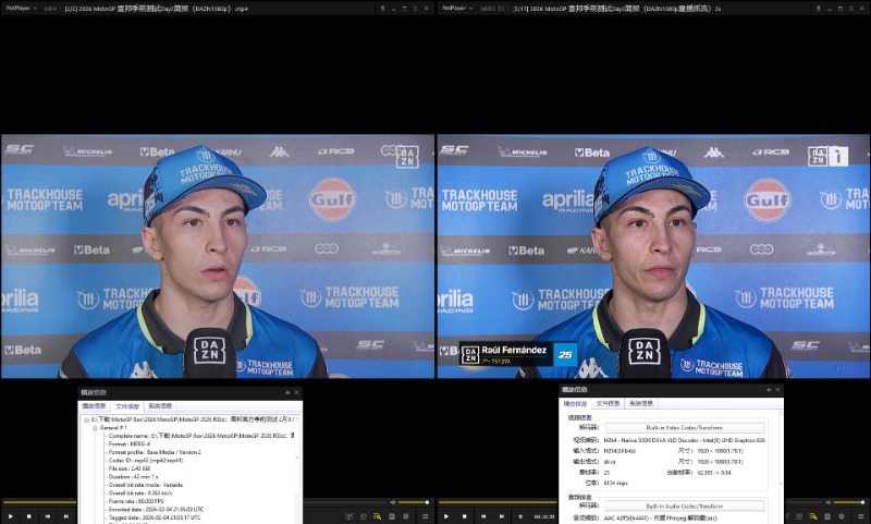 En aquel momento, la recepción por acestream no me funcionó bien, por lo que no pude descargarlo en calidad Web-DL. Anoche, cuando DAZN emitió la repetición, me apresuré a grabarlo en Web-DL. Aunque la tasa de bits y los fotogramas por segundo de la retransmisión de DAZN por Movistar en acestream son inferiores a los de la emisión original de DAZN, al menos se trata de la