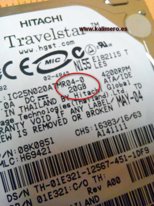 Y ya el remate final es cuando veo que el disco duro tiene su etiqueta original, y como veis en la imagen, se trata de un disco duro IDE de 20 GB, y fabricado en mayo de 2004. ¿Quién a día de hoy se compra un disco duro externo de tan solo 20 Gigas? La solución está en hacer ver que es de más capacidad, y muchos de los que se vendan, no se reclamará nada por el follón de tener que reclamar a China, que te pidan que se lo envíes con el coste que supone, que no domines el inglés para explicarles el caso, etc, y así mucha gente "se lo come con patatas". Es algo similar al Media Markt, donde he vivido en persona cómo devolvía un disco duro externo "de oferta", que no iba bien, y tal como lo devolvía, vi como lo volvían a colocar en la estantería para que pique otro, para ver is así al final alguien desistía de devolverlo y ya habrían vendido otro disco duro estropeado. (Yo no soy tonto, dicen...no, son otra cosa peor)
